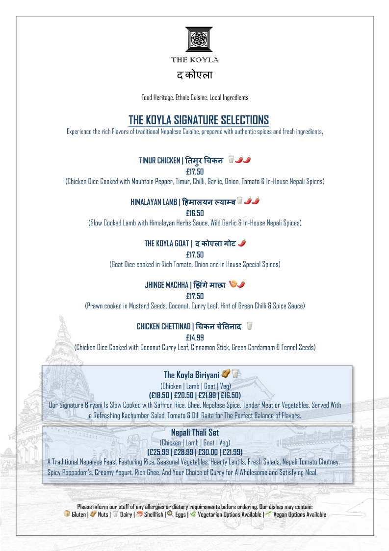 Welcome to The Koyla, a culinary gem nestled in The Courtyard, Ashford. This Nepalese restaurant offers an enticing menu that promises authentic flavors and a warm, inviting atmosphere. Each dish is a testament to traditional cooking, showcasing a variety of spices and ingredients that create delightful taste experiences.